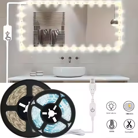 5V 2835 LED Strip Light Touch Sensor Switch Dimmable USB Flexible LED Tape Ribbon Light For Mirror Cabinet Stair Decor Lighting