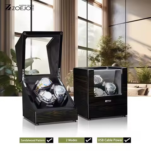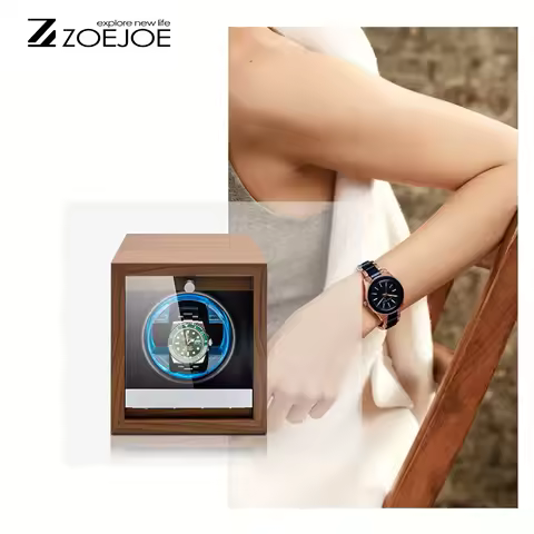 ZOJOE Single Slot Watch Winder Wood Grain Pattern LED Light USB Cable Transparent Lid Watch Storage Box Holiday Gifts For Men