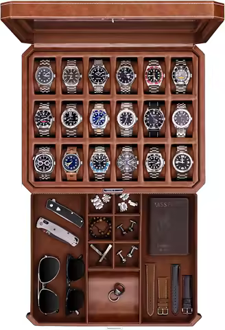 18-Slot Luxury Watch Box with Drawer, Real Glass Top, Lockable Display Case for Men's Collections (Tan/Brown)