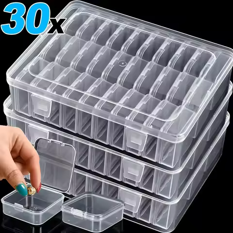 耐久性のあるプラスチック製の収納ボックス、14/30コンパートメントと小さなコンテナ - 透明なジュエリーと小物オーガナイザー
