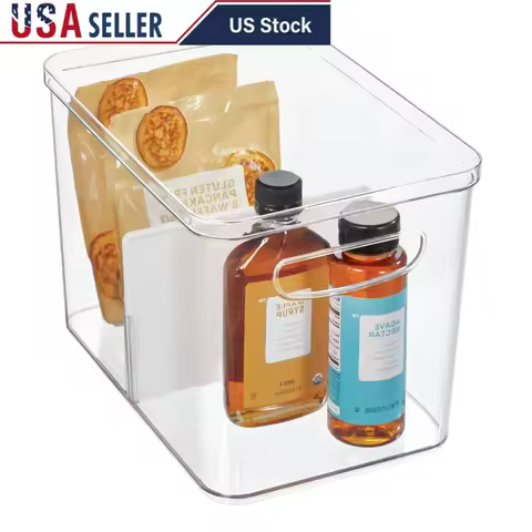 ハンドル付き透明プラスチック整理箱、仕切り付きキッチン収納容器、パントリー、冷蔵庫、バスルーム、オフィス用、耐久性あり