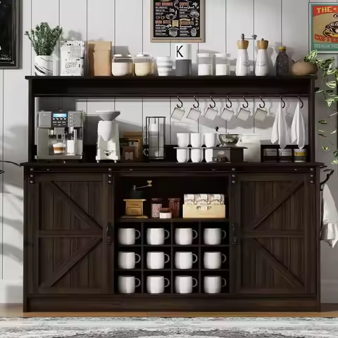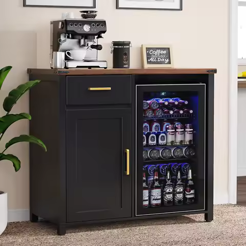 Coffee Bar with Mini Fridge, Cabinet Stand for Dorm, Kitchen, or Office, 39.4' W X 20.9' D