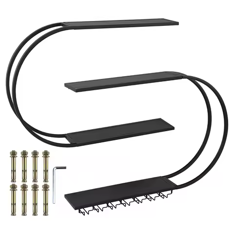 4-Tiers Floating Wine Bottle Stand with LED Light Liquor Bottle Display Storage Shelf with Glass Holder for Home Bar Dining Room