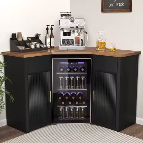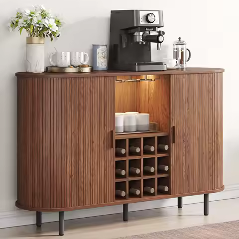 Ridged Bar Cabinet with Storage, Coffee Bar Station, L-Shaped Wine Rack for Home