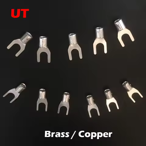 UT6-4 UT6-5 UT6-6 UT6-10 U Spade Fork Type Brass Copper Lug Splice Non Insulated Cable Wire Cold Press Connector Crimp Terminal