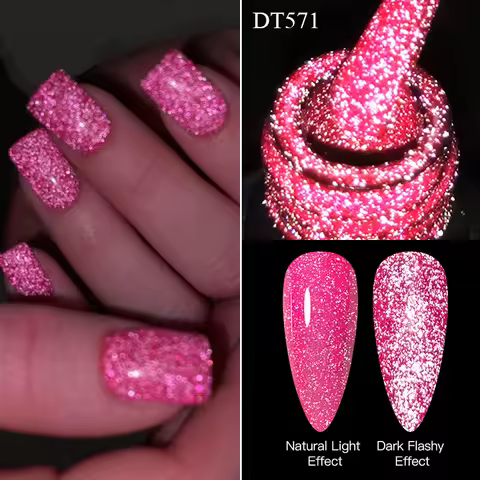 MEET ACROSS 7ml Pink Fluorescent Reflective Gel Nail Polish Glitter Neon Semi Permanent UV LED Gel Nail Art Varnish Manicure