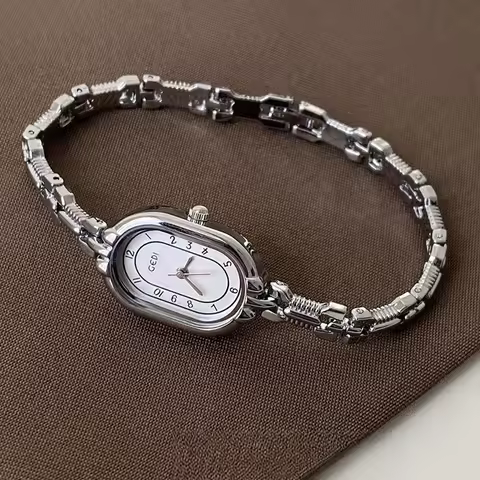 GEDI Fashion Women's Watches Oval Dials Silver Quartz Wristwatch Minimalist Casual Small Bracelet Watch Women Accessories Gifts