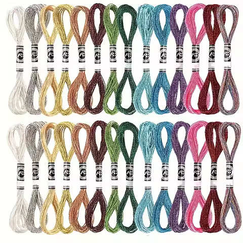 24/28PCS Light Effect High Sheen Metallic Embroidery Floss Cross Stitch Thread 8 Meters 12 Strands Skein Embroidery Thread Set