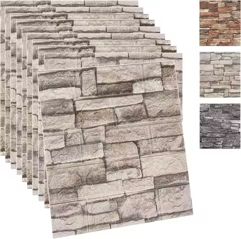 10PCS 3D Brick Wall Panels Peel and Stick Self-Adhesive Faux Stone Foam Wallpaper for Easy Home Decor