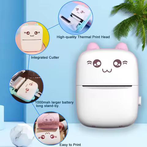 Portable Thermal Printer MINI Wirelessly BT 203dpi Photo Label Memo Wrong Question Printing With USB Cable Imprimante Portable