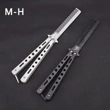 Foldable Comb Stainless Steel Practice Training Butterfly Knife Comb Beard Moustache Brushe Salon Hairdressing Hair Styling Tool