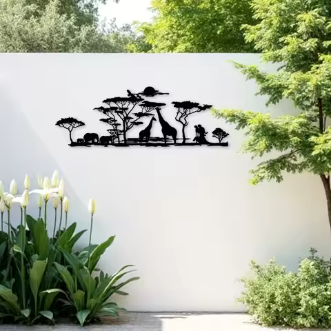1pc African animal metal wall art mural, elephant, giraffe, lion, bird and tree design art
