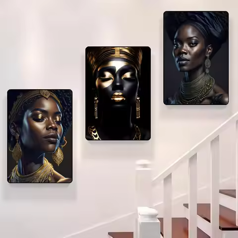 Black and Gold African Woman Poster Sticky Wall Waterproof Home Living Room Bedroom Bar Aesthetic Decoration Perfect Gift