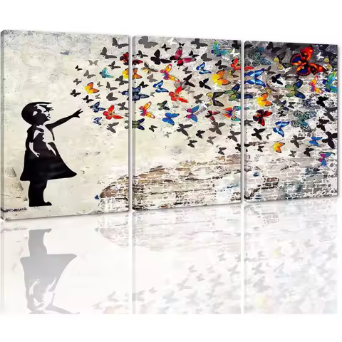 Colorful Graffiti Wall Art Funny Butterfly Paintings | Banksy Street Art Mural Pop Art, 3Pcs 24x36inch Framed Canvas