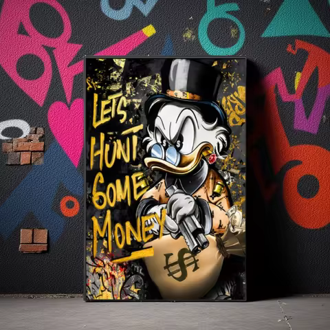 Donald Duck Hunt for Money Golden Graffiti Art Posters and Prints Fashion Luxury Paintings on the Wall Art Pictures Decor