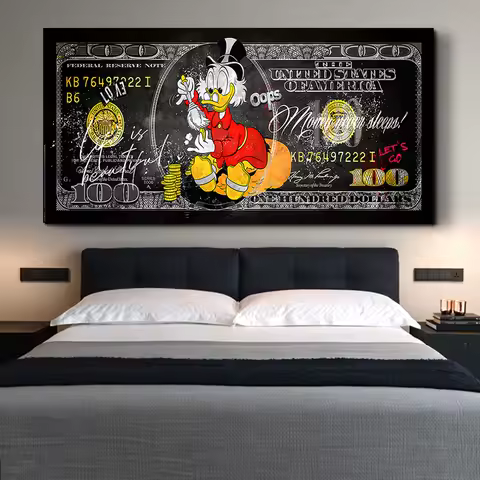 Scrooge McDuck 100 Dollars Pop Art Canvas Posters and Prints Modern Money Graffiti Art Paintings on the Wall Art Pictures Cuadro