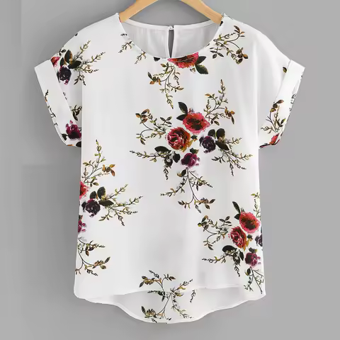 Moda verão floral impressão blusa pulôver senhoras o-pescoço camisetas femininas camisa de manga curta blusas femininas roupas