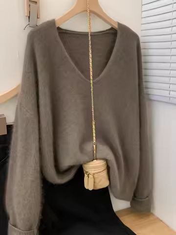 Um senso de aula! Yangqi macio ceroso 100 malhas de caxemira pura outono e inverno com decote em v coreano solto suéter de lã pulôver topo