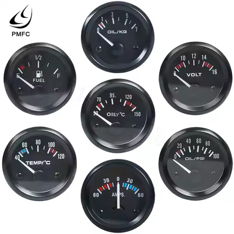 Vehicle Meter 12V Automobile Car Gauge 2" 52mm Water Temp Oil Temp Oil Press Fuel Volts Oil press kg Ammeter Gauge Black Shell