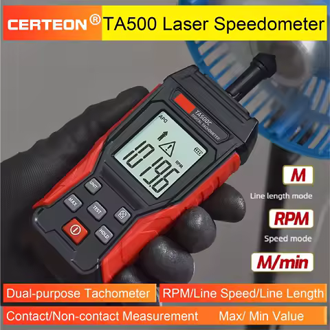 TA500C Digital Motor Tachometer Laser Contact Non-Contact RPM Meter 3-100000RPM for Electric Motor Backlit Max Min Hold