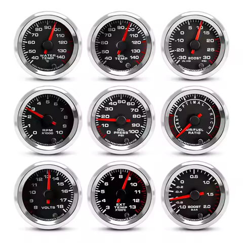 Boost/Water Temp/Oil Temp/Oil Press/Voltage/Tachometer/Air Fuel Ratio/EGT Gauge 52mm Analog led White Case+ 52MM Gauge Pods