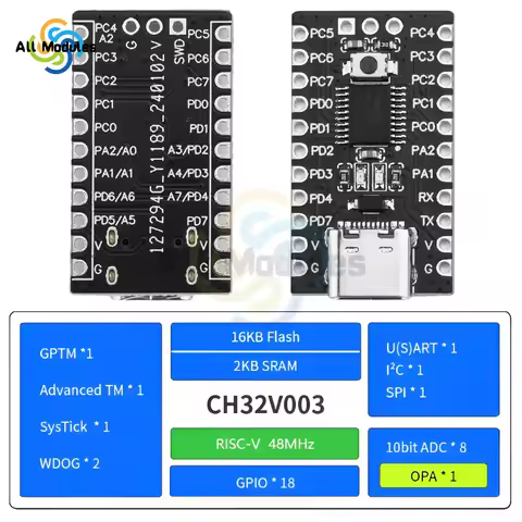 | CH32V003 | RISC-V | 32 KB | 8 KB | CH32V003 Development Board |