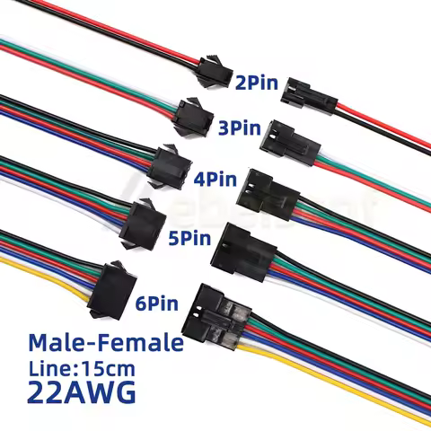 2 3 4 5 6 Pin LED Strip JST SM Connector Male or Female Adapter Plug JST Connector Terminal with 15CM 22AWG Wire for Light Strip