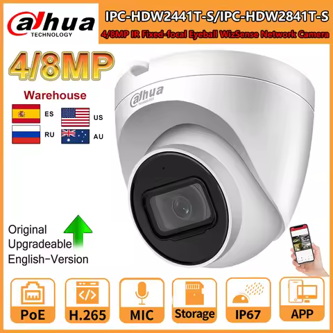 Dahua 8MP Camera 4K IR PoE IPC-HDW2841T-S 4MP IPC-HDW2441T-S Build-in Mic SD Card Slot Vehicle Human Detection WizSense