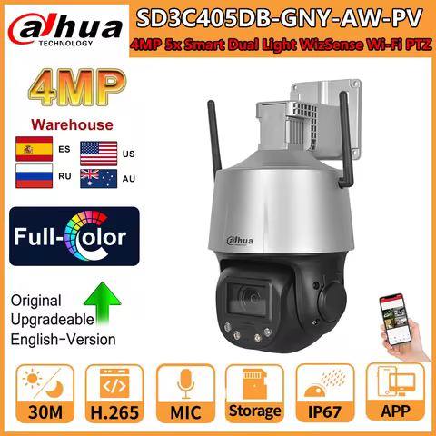 Dahua 4MP 5X Smart Dual Light WizSense Wi-Fi PTZ Camera SD3C405DB-GNY-AW-PV Color Night Built-in Mic and Speaker SD Card Slot