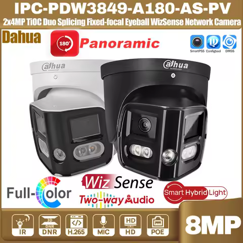 Dahua IPC-PDW3849-A180-AS-PV 2x4MP 180° TiOC Duo Splicing Fixed-focal Eyeball WizSense Network Camera Sound&Light Two-way-Audio