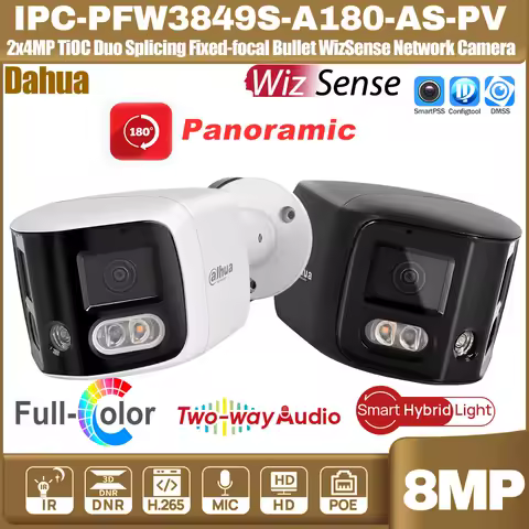 Dahua IPC-PFW3849S-A180-AS-PV 2x4MP 180° TiOC Duo Splicing Fixed-focal Bullet Network Camera 8MP Sound&Light Alarm Two-way-Audio