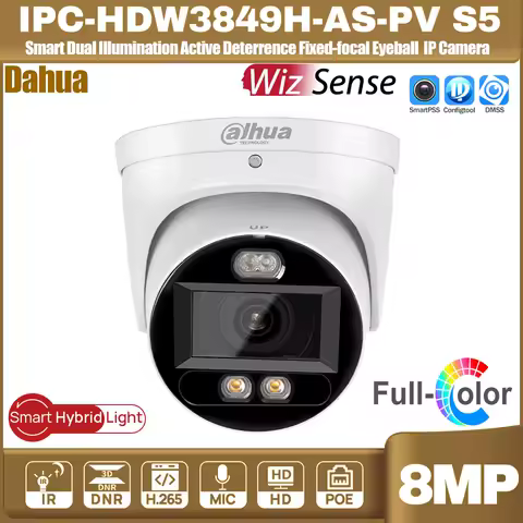 Original Dahua IPC-HDW3849H-AS-PV S5 POE 4K 8MP Smart Dual Light Active Deterrence WizSense Network Camera Full Color Audio