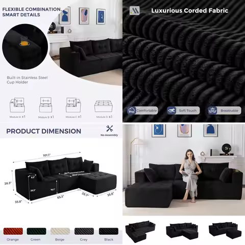 107"Cloud Sectional Couch with Deep Seat,Modern Modular Sofa with L-Shape Chaise,No Assembly Required, Upholstered, Customized