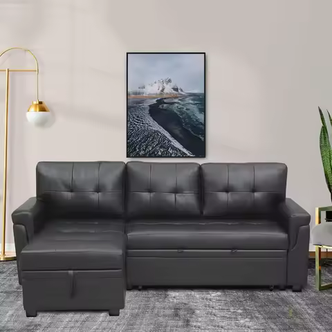 Modern Sectional Sofa, with Storage Chaise Black/Air Leather