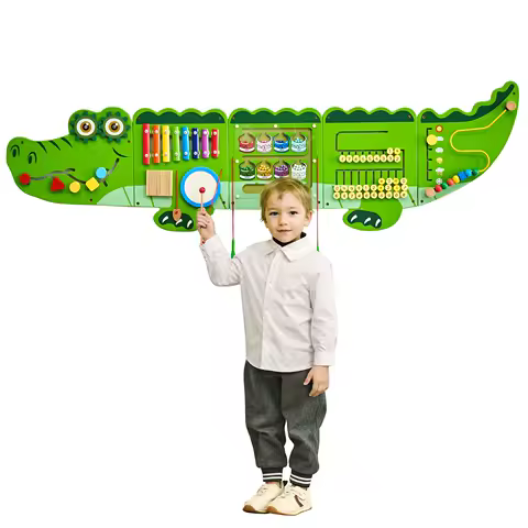 SucceBuy 9-Activities Crocodile Kids Busy Hanging Board Toy Montessori Early Learning Puzzle Decor Panels Toys for Children Gift