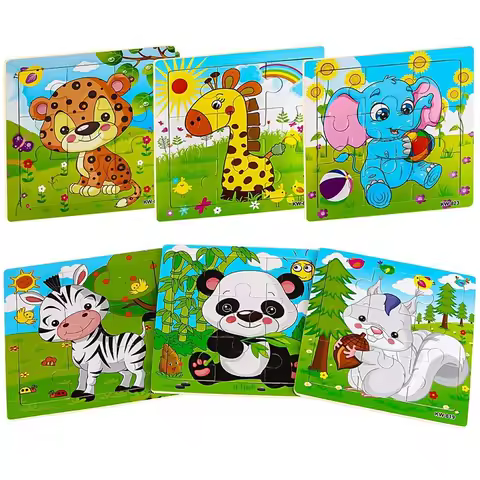 Hot New 60 Pieces Wooden Puzzle Toys for Children Cartoon Vehicle Animal Wood Jigsaw Baby Learning Educational Toy Kids Gift