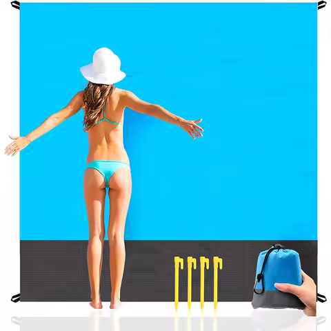 Multiple Sizes Beach Blanket Sandproof Waterproof Large Quick Drying Outdoor Picnic Mat with 4 Stakes for Travel Camping Hiking