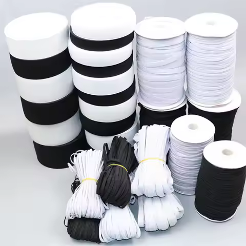 10meters Black / White Sewing Elastic Band Webbing Spandex 3mm ~ 15mm for Clothes Garment Trousers Belt Sewing DIY Accessories