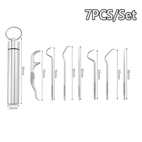 Stainless Steel Toothpick Set Reusable Toothpicks Tooth Flossing Tartar Removal Tool for Tooth Oral Cleaning with Storage Tube