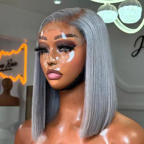 Silver Grey Lace Front Short Bob Wig Grey Colored Straight 13x4 HD Lace Front Wigs Human Hair 10 12 14 16 Inch For Black Women
