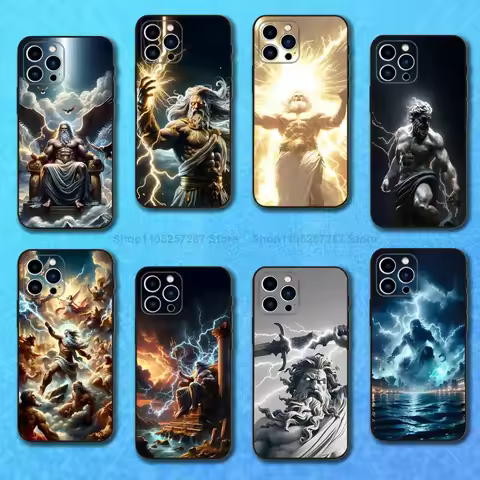 Greek Art Zeus Mythology For iPhone 12,14,13,15,16,11,17,X,Mini,XR,SE,XS,Plus,Pro,Max,8,7,Soft Silicone Black Case