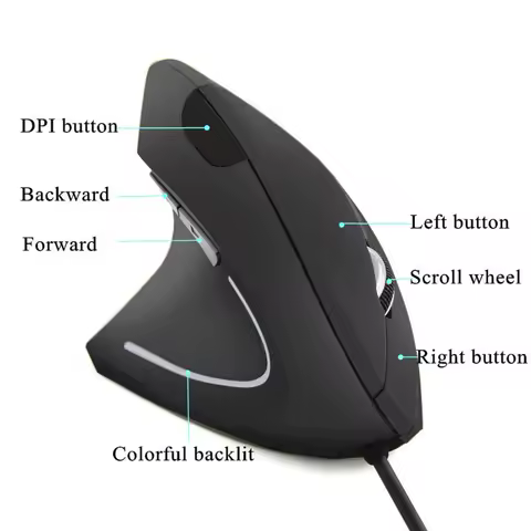 Wired Left Hand Vertical Mouse Ergonomic Gaming Mouse 800 1200 1600 DPI USB Optical Wrist Healthy Mice Mause For PC Computer