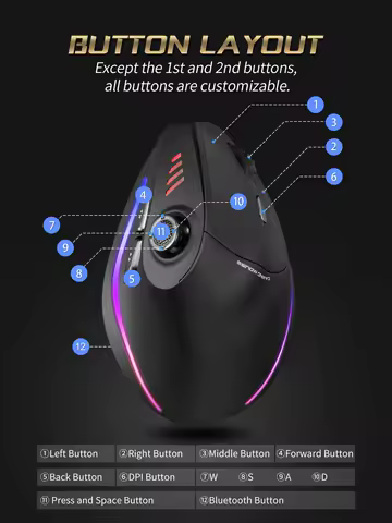 ZELOTES F18 Vertical Ergonomic Mouse 2.4G Wireless Mouse Bluetooth 24000DPI with Programming Gaming Mouse for PC Computer Laptop