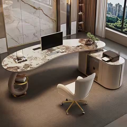 elegant rock plate office table Modern minimalist design high-end Computer desk side cabinet mesa para escritório furniture