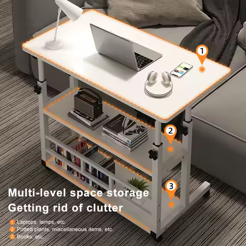Multi-Layer Standing Desk Height Adjustable Wooden Computer Desk Workstation Work Table Bedside Table for Home Office
