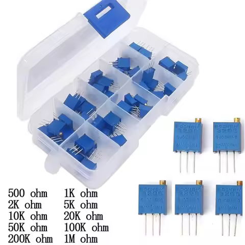 50PCS 3362P Multiturn Trimmer Potentiometer Kit 1K 2K 5K 10K 20K 50K 100K 200K 1M High Precision 3362 Variable Resistor Set