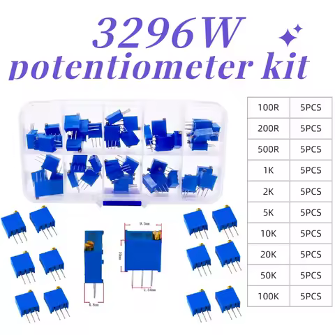 50PCS High Precision 3296 Variable Resistor Set 3296W Multiturn Trimmer Potentiometer Kit 500R 1K 2K 5K 10K 20K 50K 100K 200K 1M