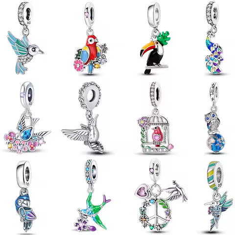 925 スターリングシルバーオウム鳩ハチドリチャームビーズ鳥動物フィットオリジナルブレスレット DIY ペンダント女性ジュエリー 2025