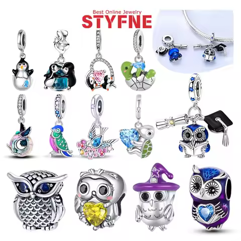 絶妙な 925 スターリングシルバーフクロウペンギンカメオウムかわいい動物クリエイティブチャームビーズフィットオリジナルブレスレット DIY ジュエリー