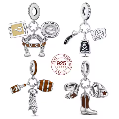 2025年流行 925スターリングシルバー ペンダント ブレスレット対応 DIY ウェスタン カウボーイ チャーム 海賊 オウム ビーズ ファッション エレガント ギフト デイリーウェア